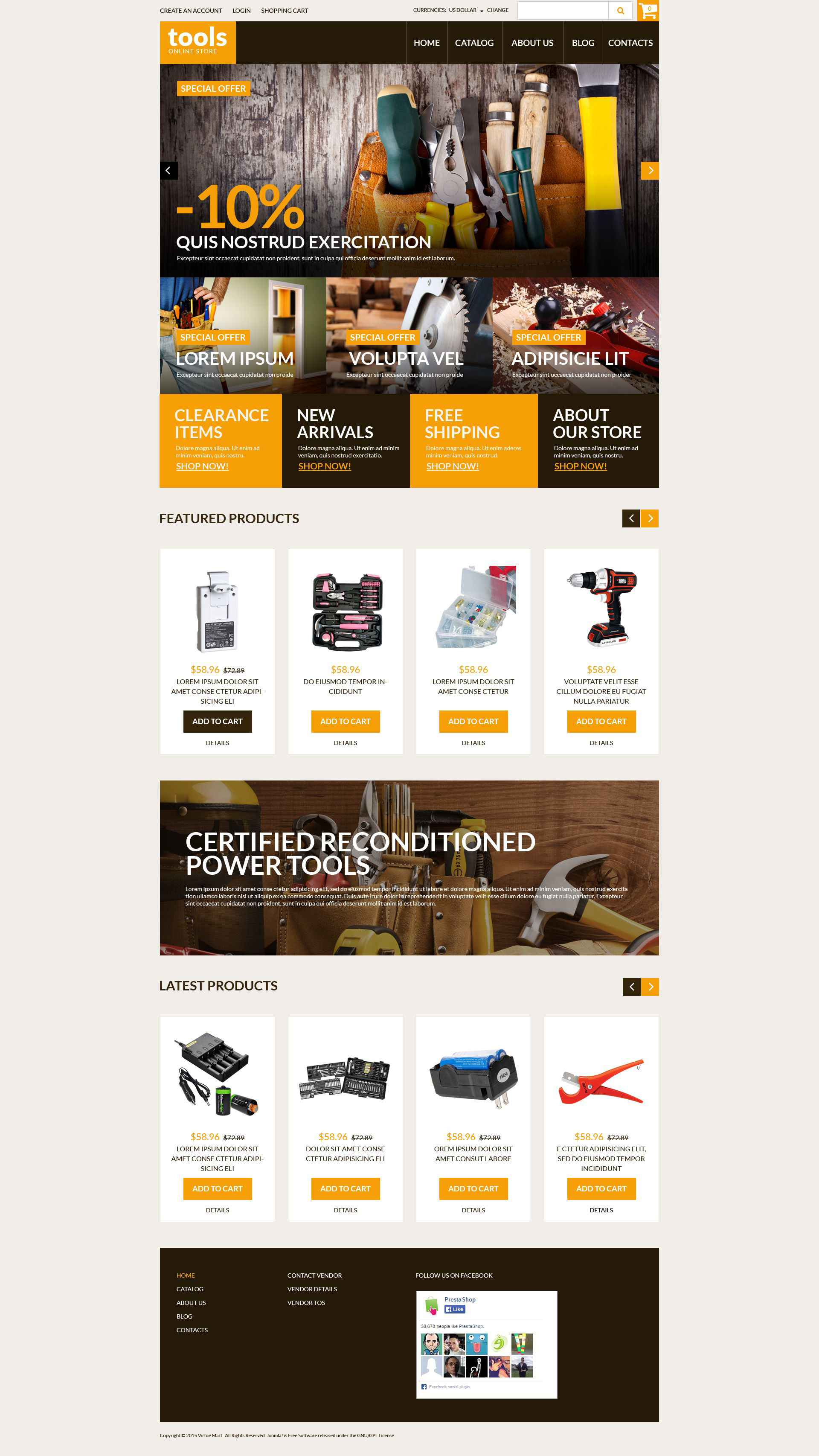 Инструменты разнорабочего шаблон virtuemart - Tools & Equipment - VirtueMart шаблон для интернет-магазина