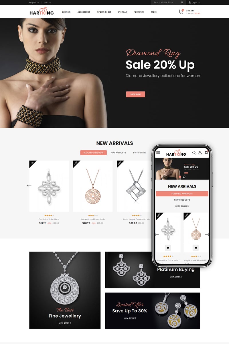 Hartking - идеально подойдет для сайтов в категории Ювелирные украшения. PrestaShop шаблон для сайта интернет-магазина - Jewelry Shop PrestaShop Theme.