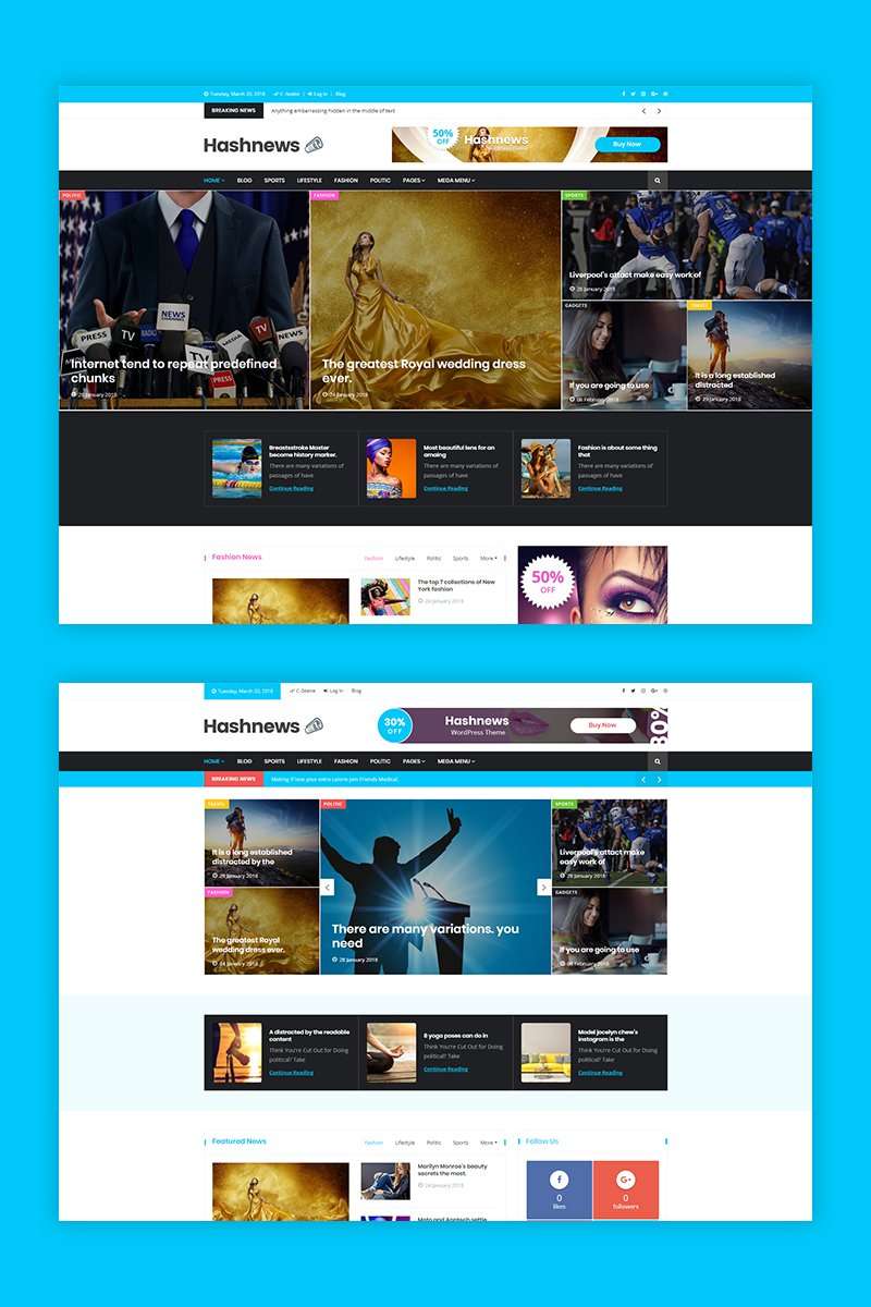HashNews - подходит для сайтов в категории Новостной портал. WordPress продаваемый шаблон - Magazine & Newspaper WordPress Theme.