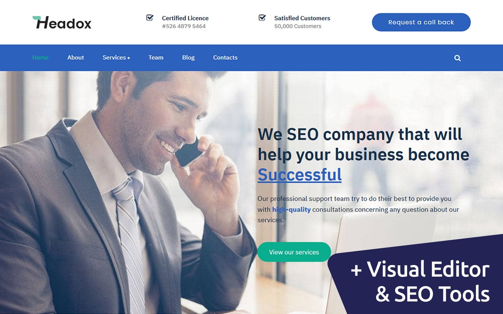 Moto CMS 3 функциональный шаблон - Headox - Consulting Services Moto CMS 3 Template, подойдет для сайтов на тему Консалтинг.