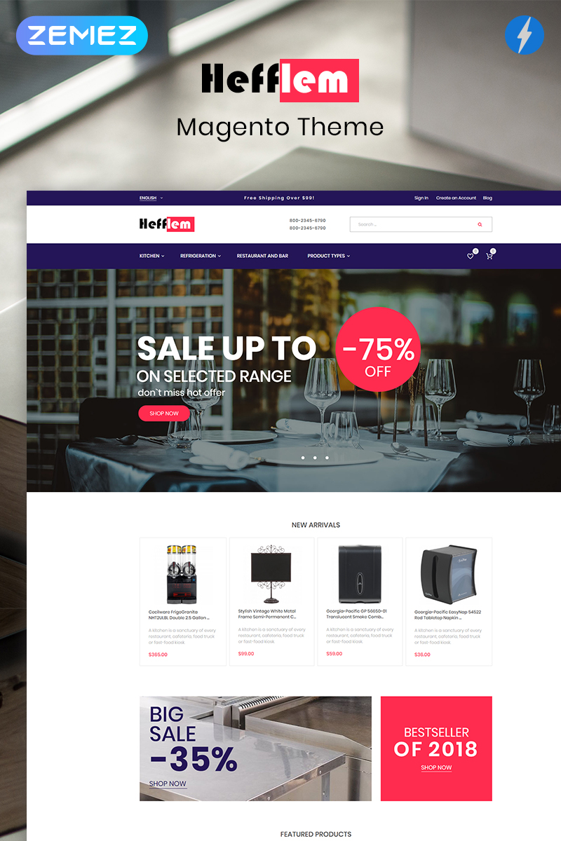 Hefflem - идеально подойдет для сайтов на тему Дизайн и интерьер. Magento современный шаблон - Kitchen Furniture Ecommerce Template Magento Theme.