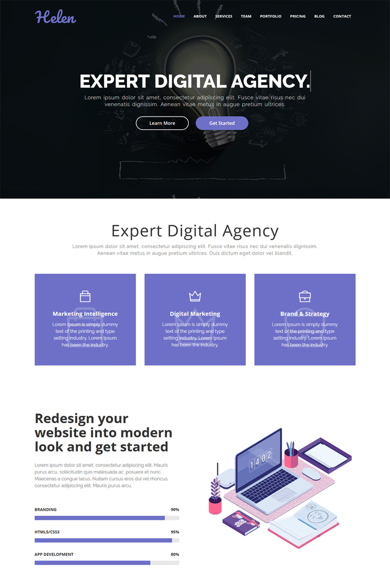 Лендинг шаблон посадочной страницы - Helen - One Page Parallax Landing Page Template, отлично подходит для сайтов в категории Бизнес услуги.