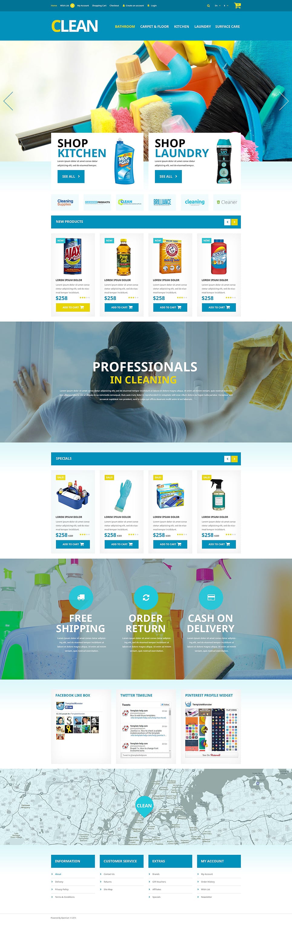 OpenCart шаблон для интернет-магазина - Cleaning - Home Cleaning Supplies OpenCart Template, идеально подходит для сайтов на тему Клининговая компания.