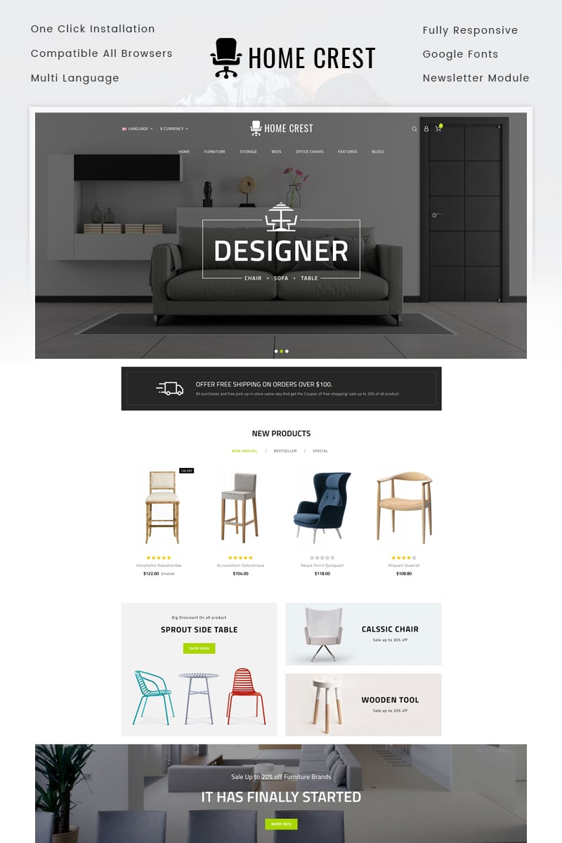 Home Crest - отлично подойдет для сайтов в категории Архитектура. OpenCart интернет-магазин для сайта - Furniture Store OpenCart Template.
