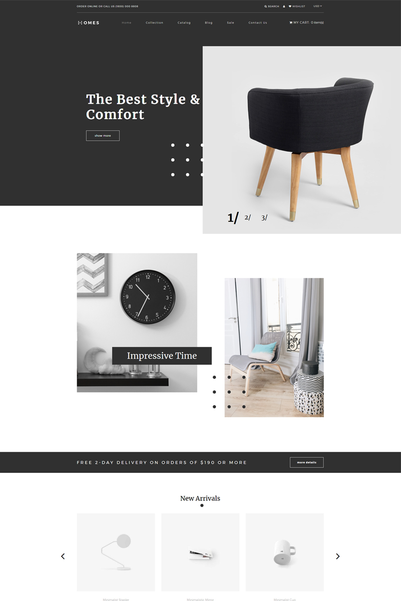 Shopify интернет-магазин - Homes - Home Decor Multipage Minimalistic Shopify Theme, идеально подойдет для сайтов Декор.
