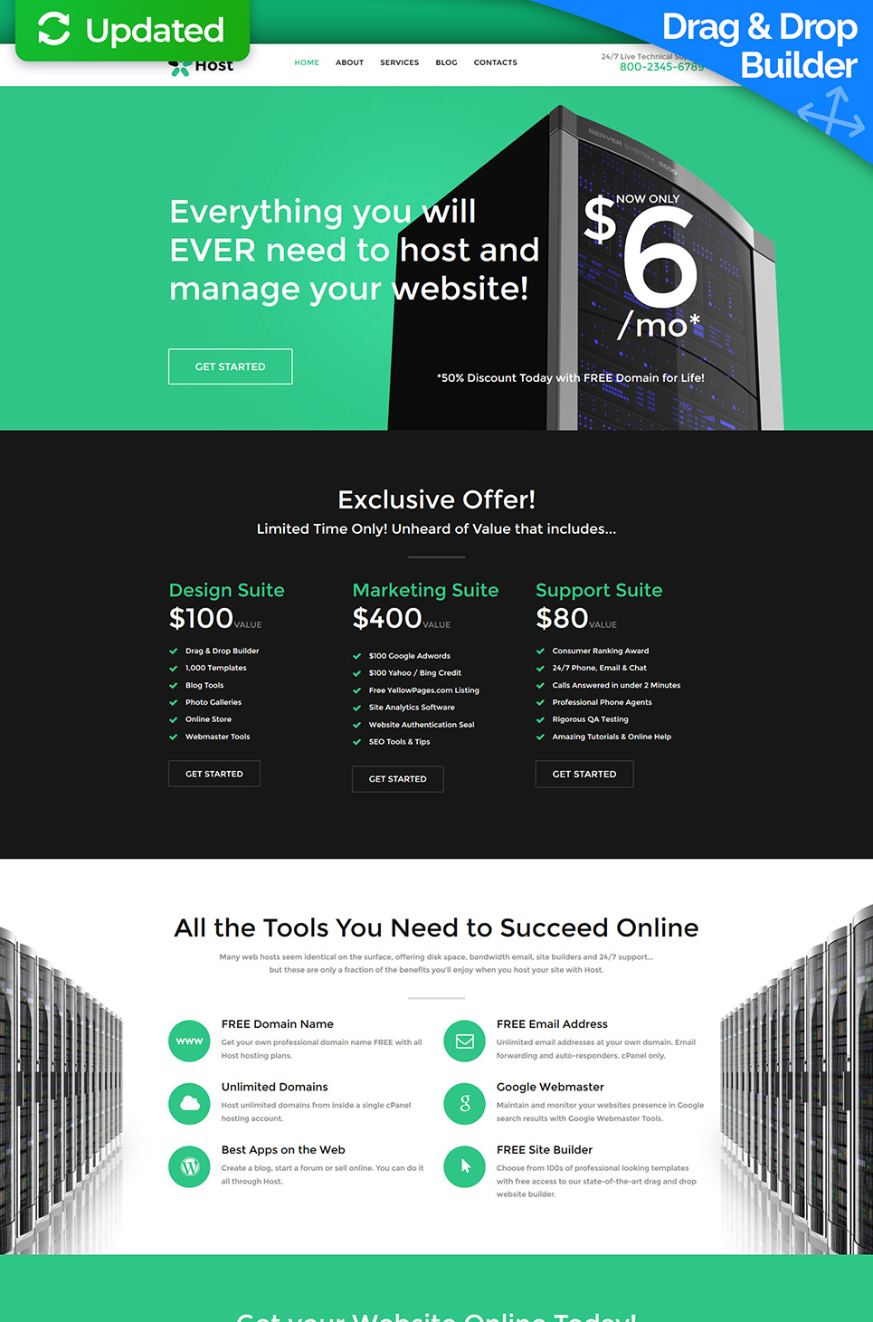 Host - идеально подходит для сайтов на тему Хостинг. Moto CMS 3 минималистичный шаблон - Best Web Hosting Moto CMS 3 Template.