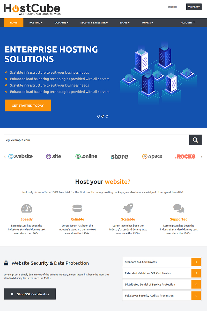 Шаблон веб-сайта hostcube whmcs - Hosting - HTML5 приятный шаблон