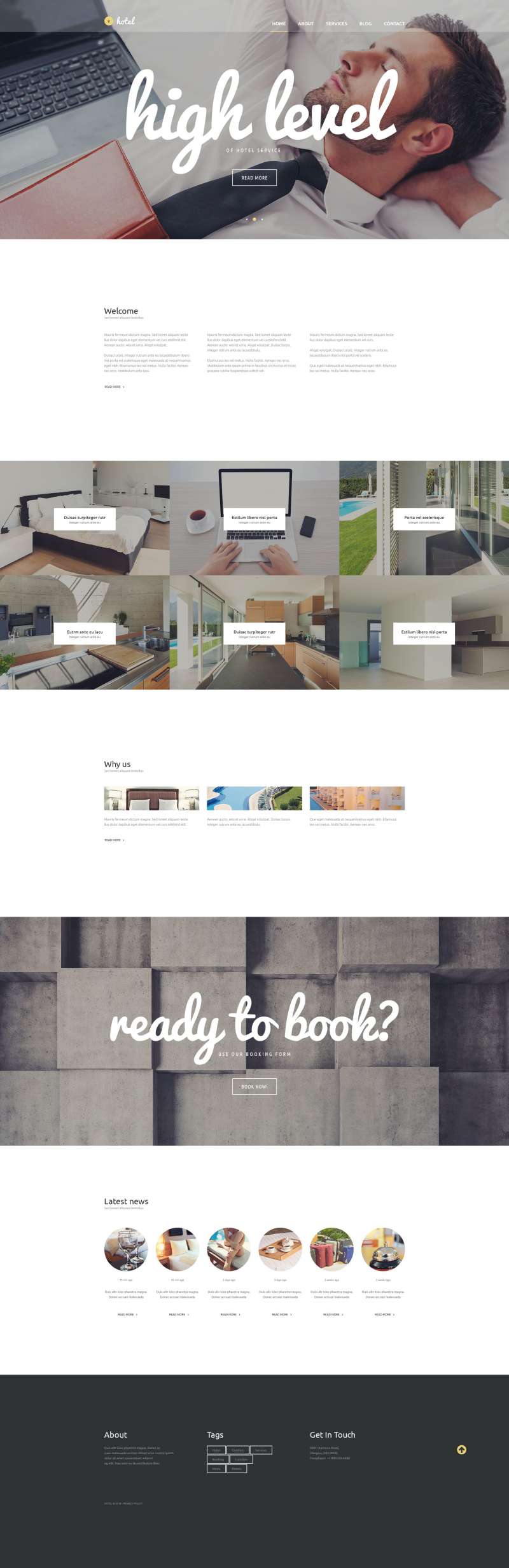 Hotels - превосходно подходит для сайтов в области Отели. WordPress популярный шаблон - Hotel Business WordPress Theme.