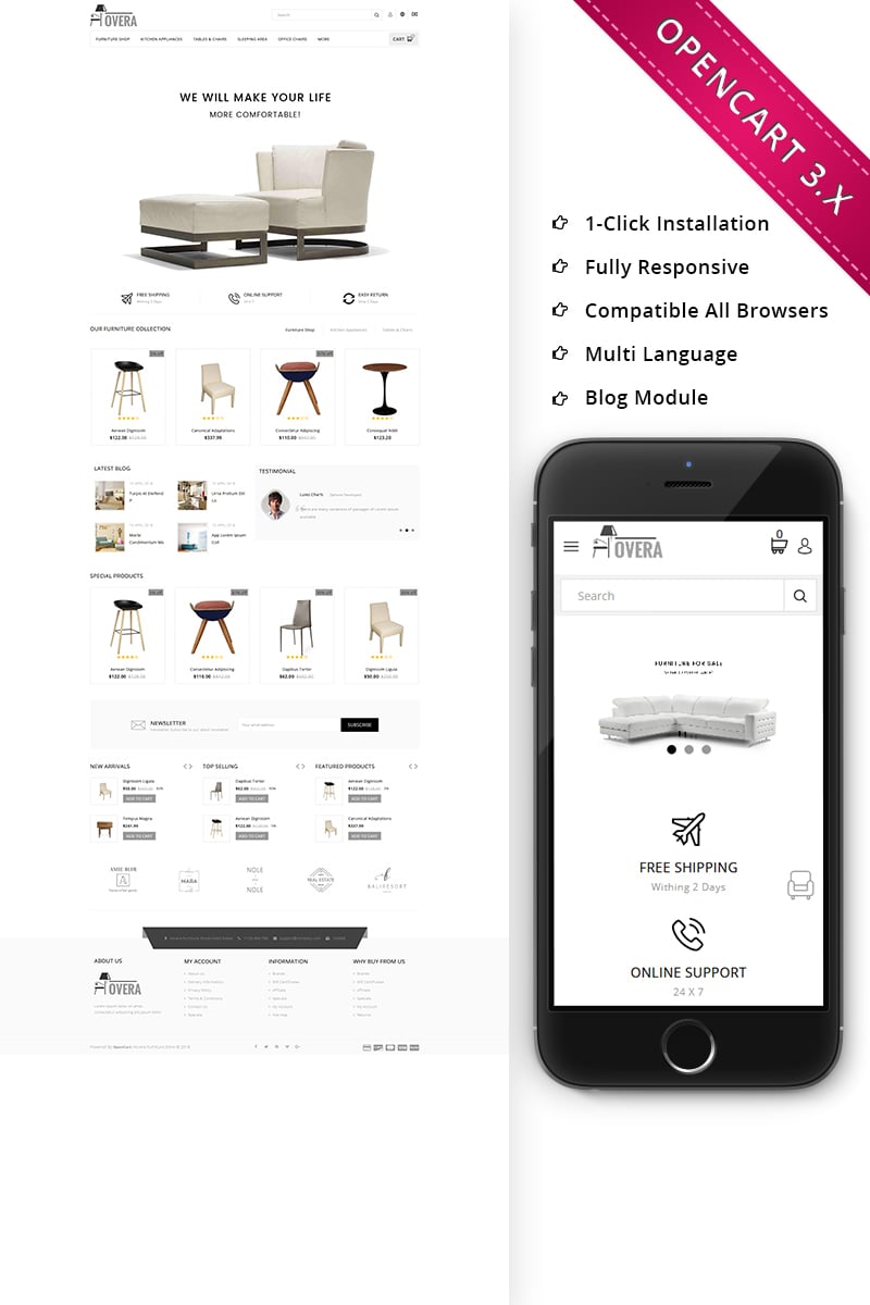 OpenCart шаблон интернет-магазина - Interior Design - Hovera Furniture Responsive Store OpenCart Template, отлично подойдет для сайтов в области Дизайн интерьеров.