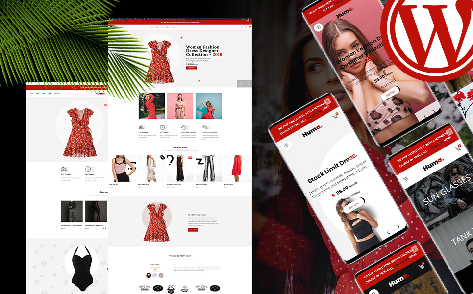 Huma - специально для сайтов в категории Магазин одежды. WordPress современный шаблон - Multipurpose eCommerce WordPress Theme.