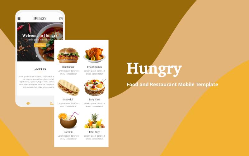 HTML5 отличный шаблон - Hungry - Food and Restaurant Mobile Website Template, превосходно подойдет для сайтов на тему Еда и ресторан.