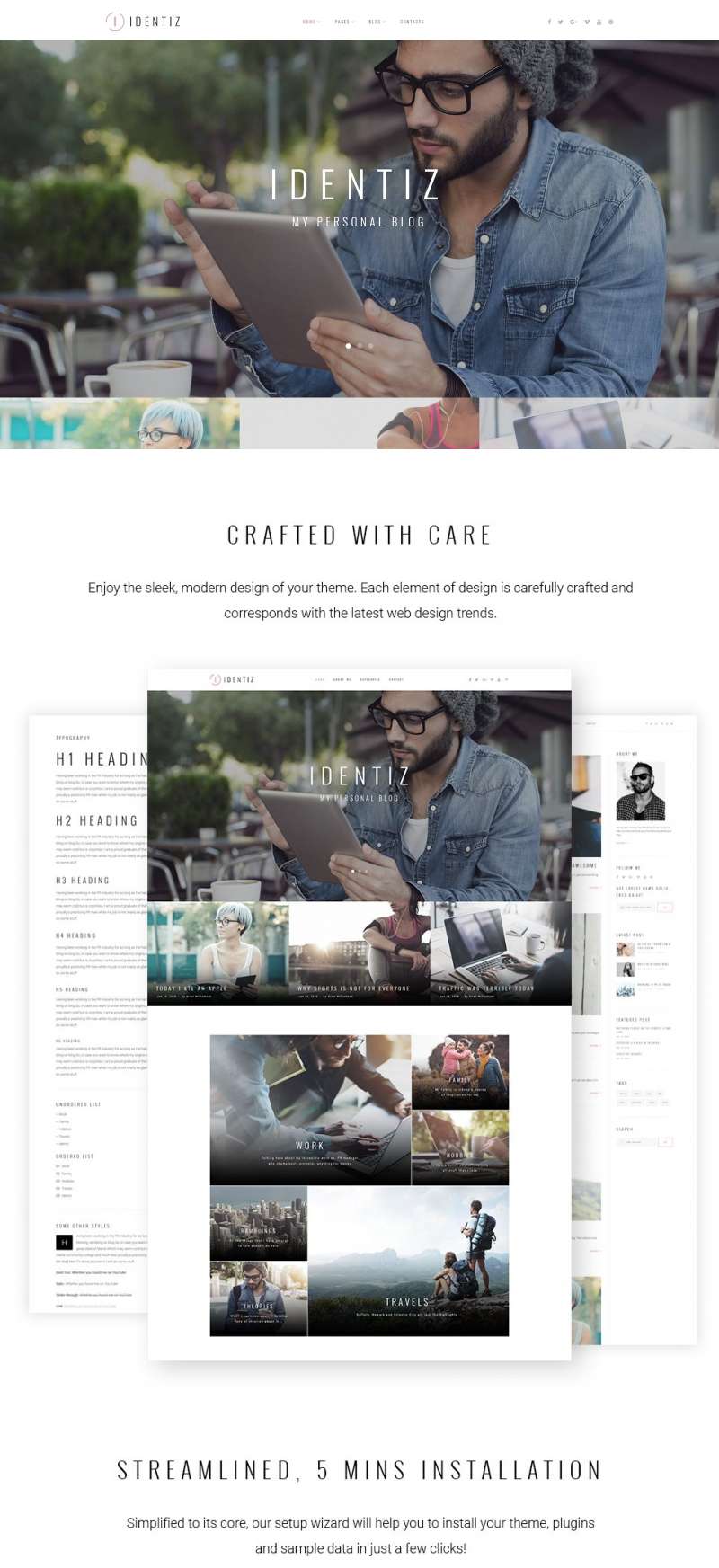 WordPress продаваемый шаблон - Identiz - Personal Blog WordPress Theme, подходит для сайтов в области Персональная страница.