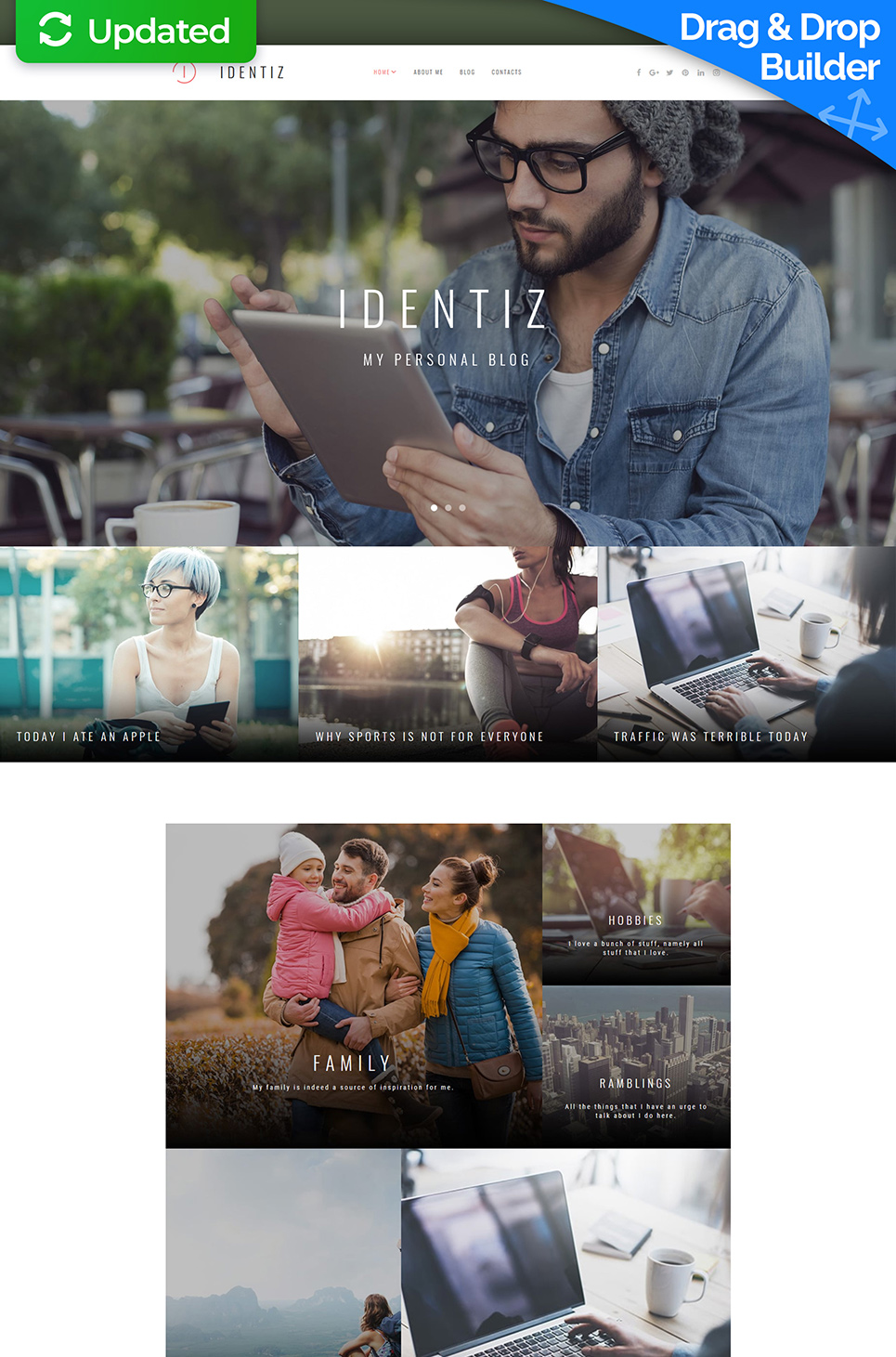 Identiz - хорошо подойдет для сайтов Персональная страница. Moto CMS 3 мультишаблон - Personal Portfolio Moto CMS 3 Template.