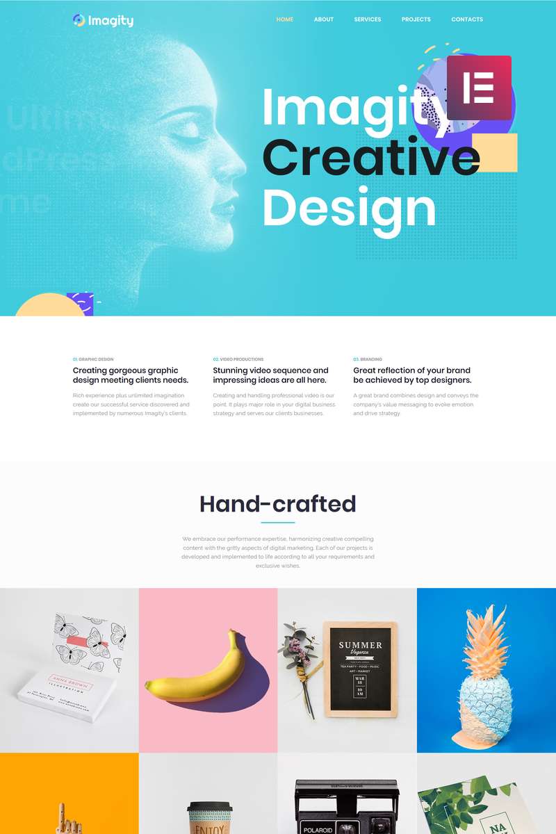 Imagity - хорошо подойдет для сайтов на тему Дизайн студия. WordPress продаваемый шаблон - Creative Minimal WordPress Elementor Theme.