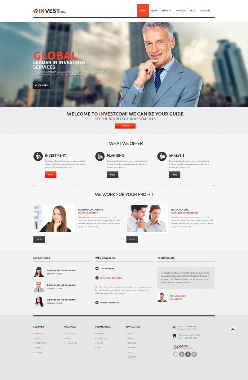 WordPress адаптивный шаблон - Investment Company - Investment Company Responsive WordPress Theme, отлично подойдет для сайтов в категории Инвестиционная компания.