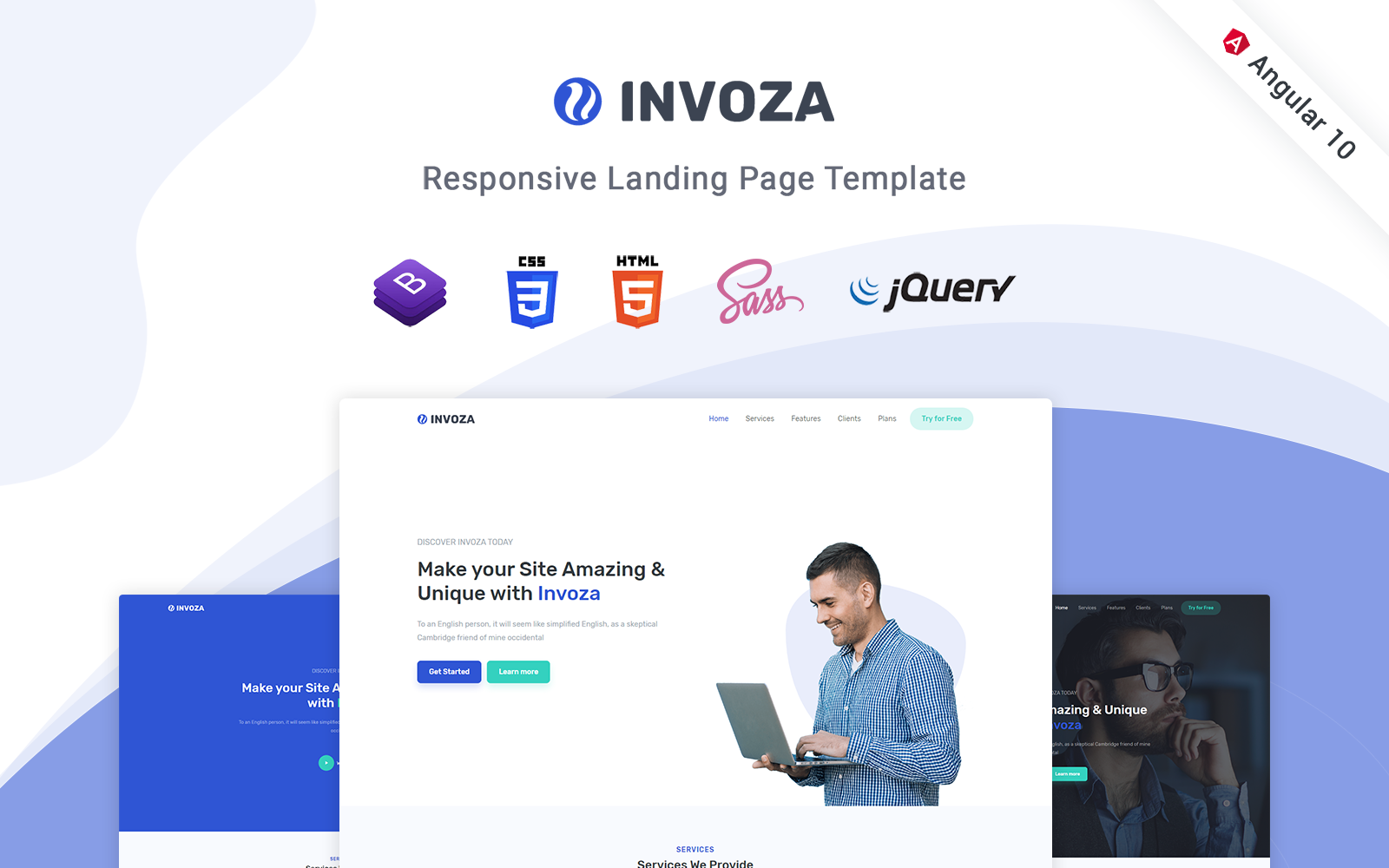 Invoza - специально для сайтов Бизнес и услуги. Лендинг шаблон одностраничного сайта - Responsive Landing Page Template.