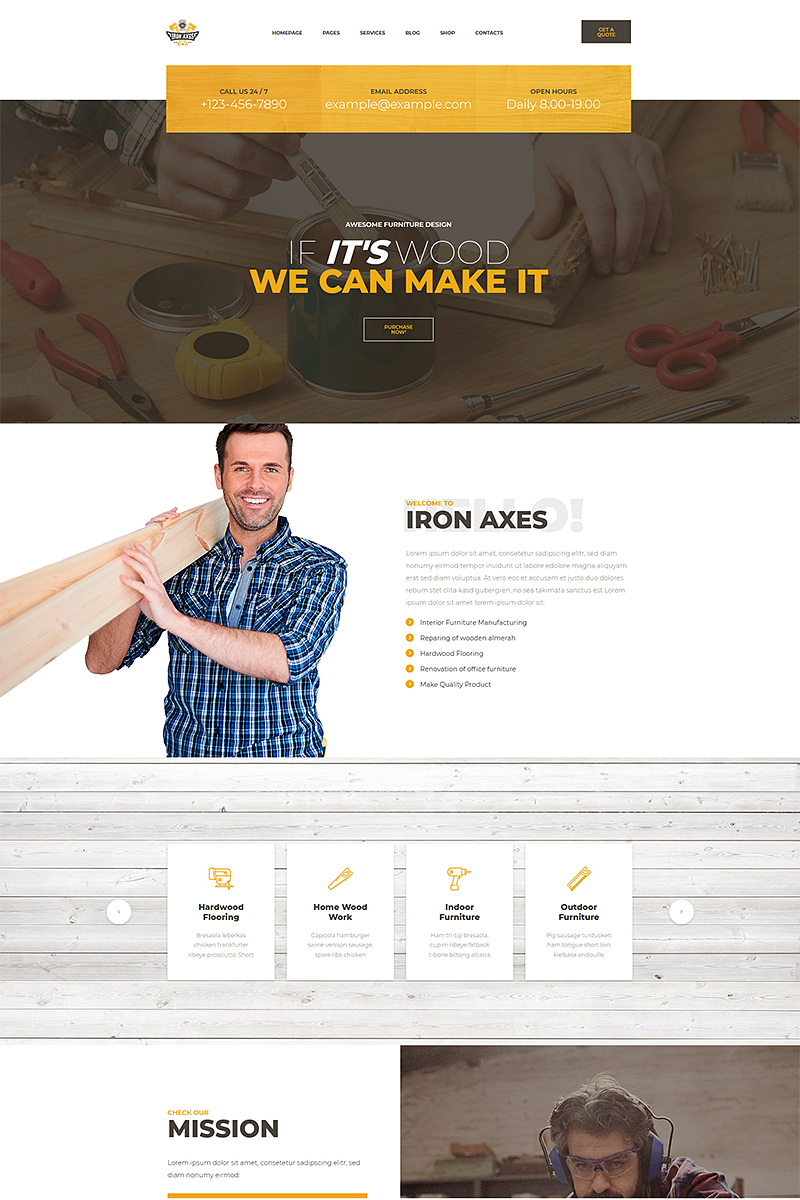 Демо-сайт Подробнее WooCommerce шаблоны Премиум Carpenter Service and Shop WooCommerce Theme - Woodbhai - WooCommerce шаблон интернет-магазина Wordpress Ремонт Скачали: 1