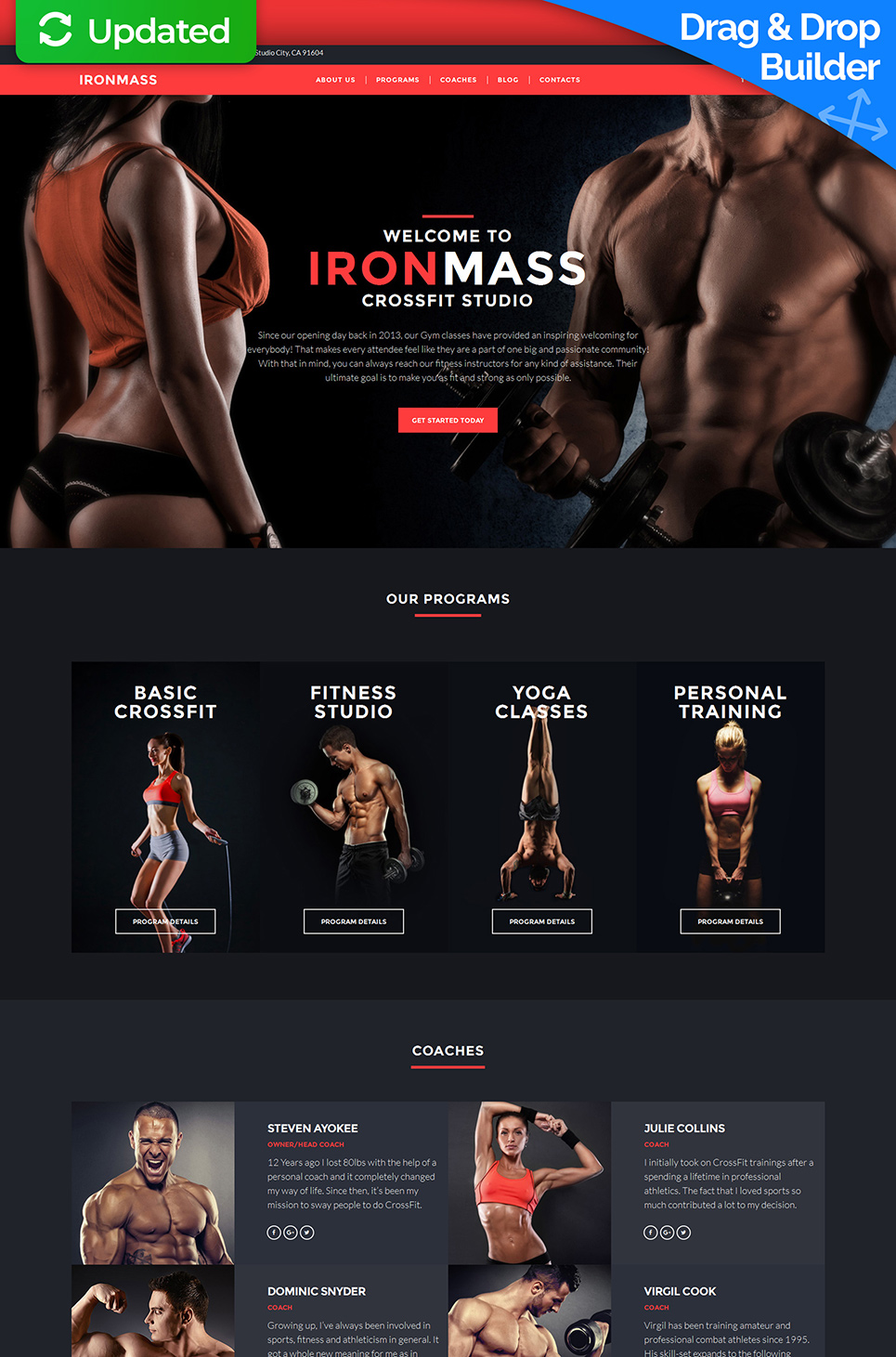 Moto CMS 3 эффектный шаблон - IronMass - Fitness Center Moto CMS 3 Template, отлично подойдет для сайтов Спортивный зал.