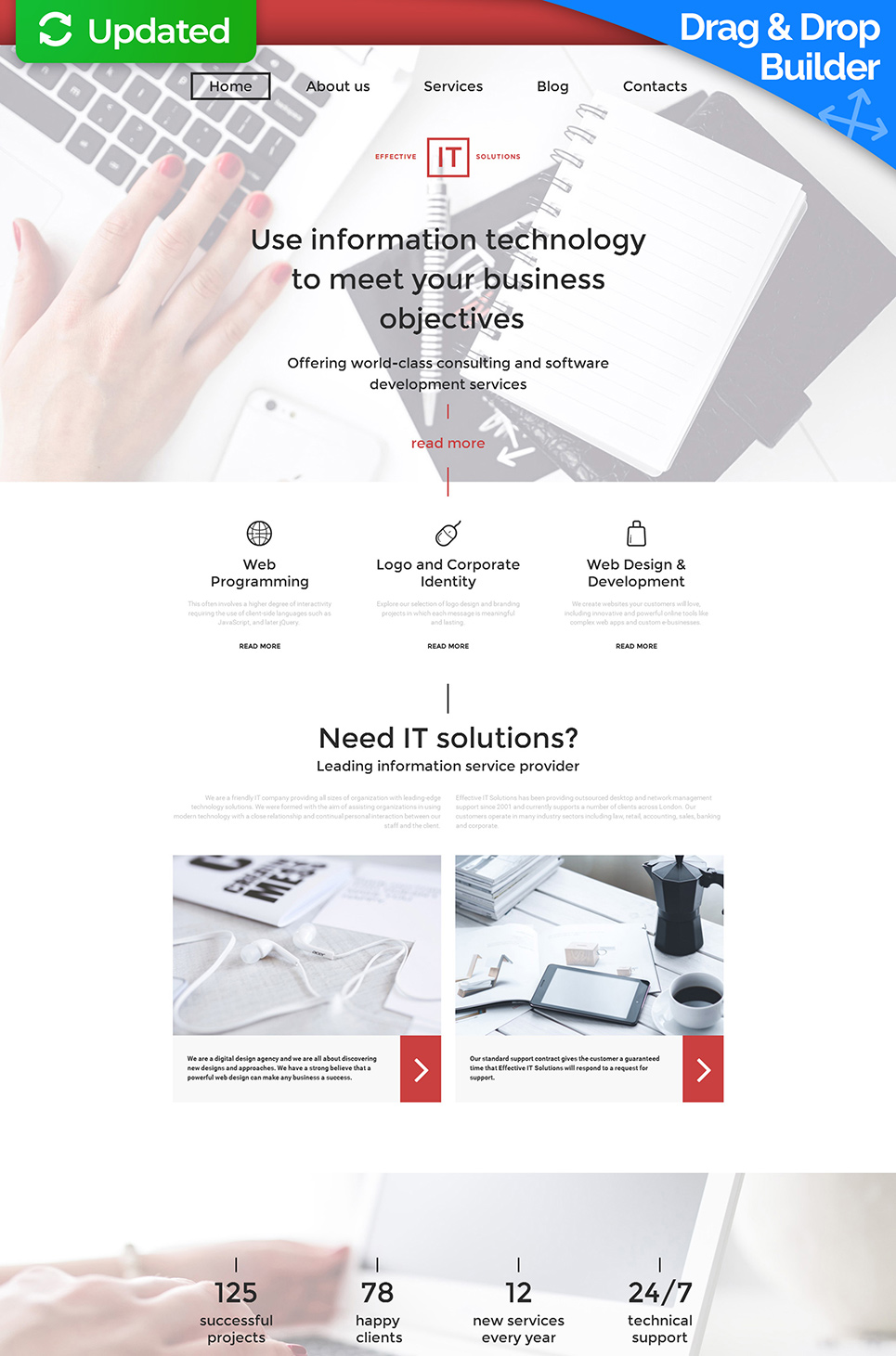 Moto CMS 3 универсальный шаблон - IT - IT Services Moto CMS 3 Template, хорошо подходит для сайтов в категории Информационные технологии.