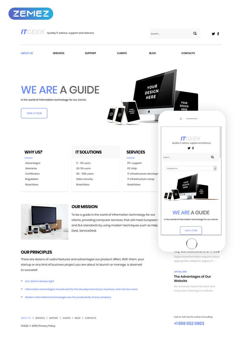 Joomla мультишаблон - ITGeek - IT Services Clean Joomla Template, превосходно подойдет для сайтов в области Информационные технологии.