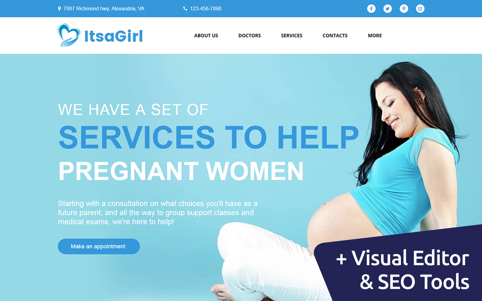 ItsaGirl - превосходно подойдет для сайтов на тему Беременность. Moto CMS 3 мультишаблон - Pregnancy Center Moto CMS 3 Template.