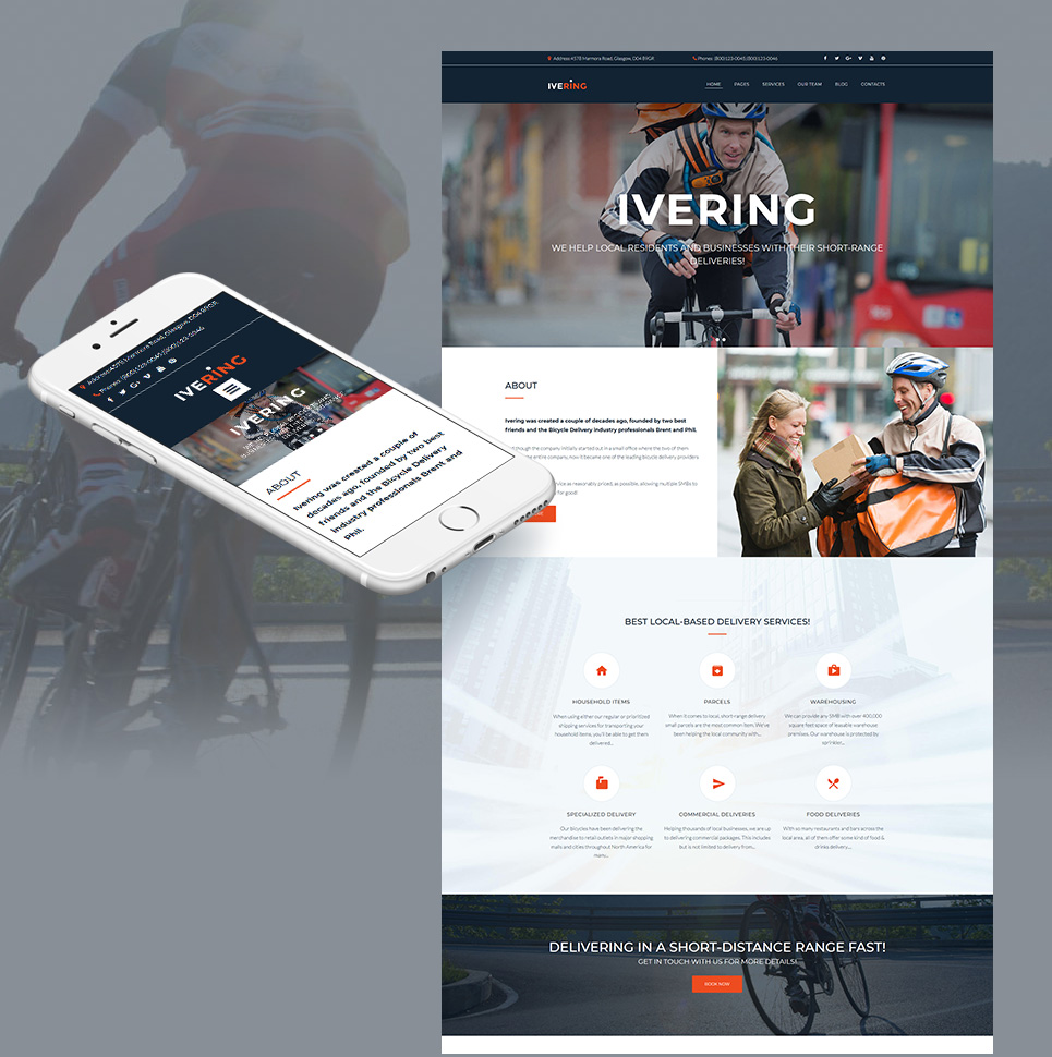 Ivering - подходит для сайтов в сфере Услуги доставки. Moto CMS 3 минималистичный шаблон - Bike Courier & Package Delivery Moto CMS 3 Template.