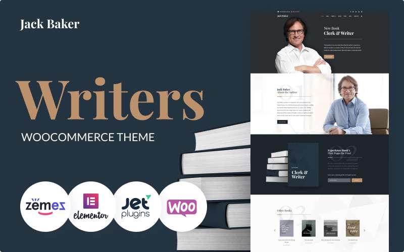 WordPress продаваемый шаблон - Jack Baker - Writer Responsive WordPress Theme, превосходно подойдет для сайтов в категории Издательская компания.