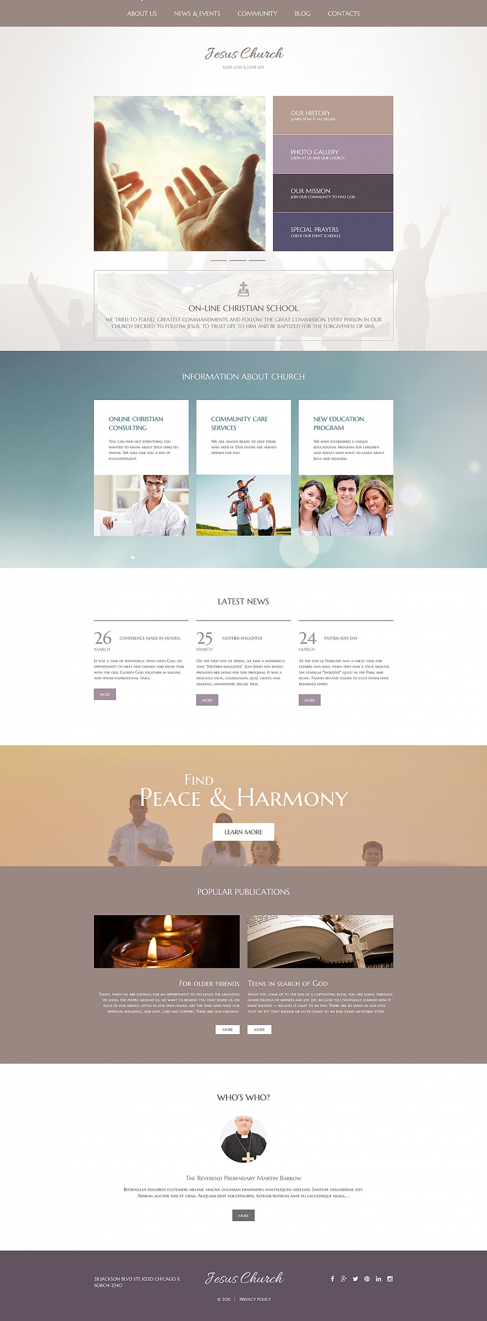 Religious - превосходно подходит для сайтов на тему Религия. Moto CMS 3 шаблон 2021 года - Jesus Church Moto CMS 3 Template.