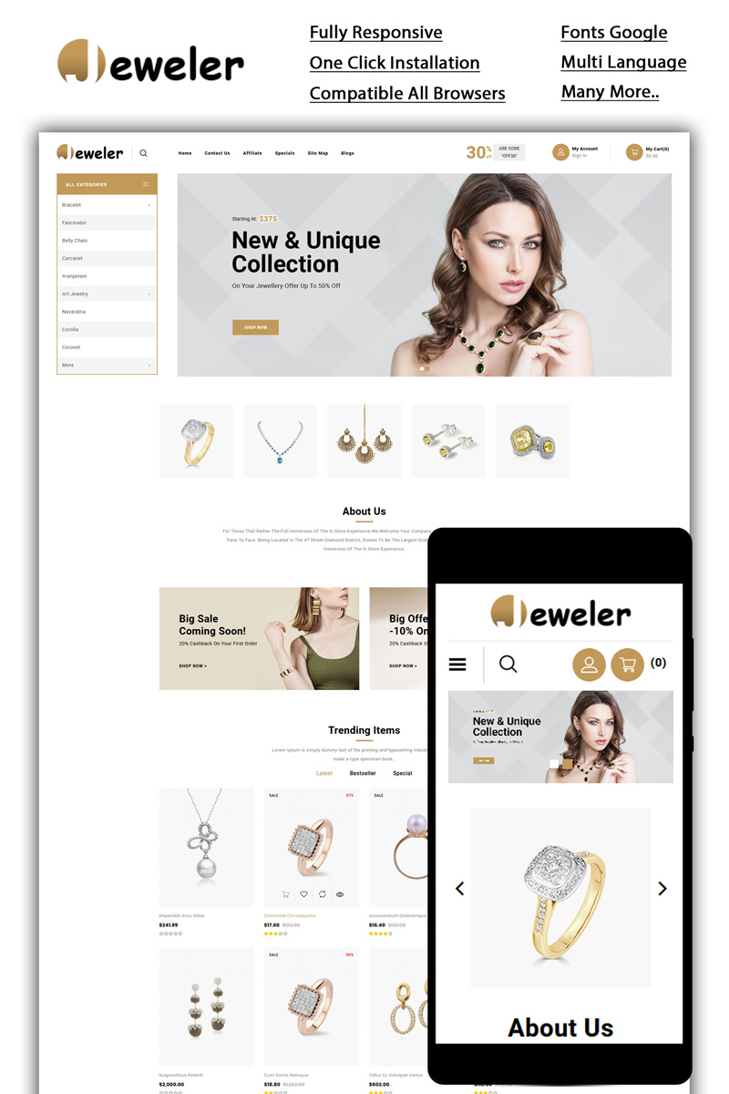 OpenCart интернет-магазин - Jeweler - Online Store OpenCart Template, отлично подойдет для сайтов на тему Магазин косметики.