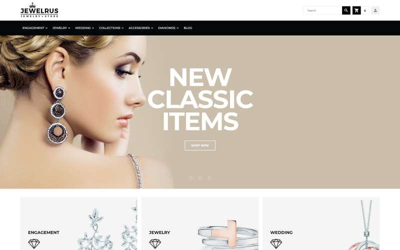 Jewelrus - идеально подходит для сайтов в сфере Аксессуары. Magento продаваемый шаблон - Jewelry Store Magento Theme.
