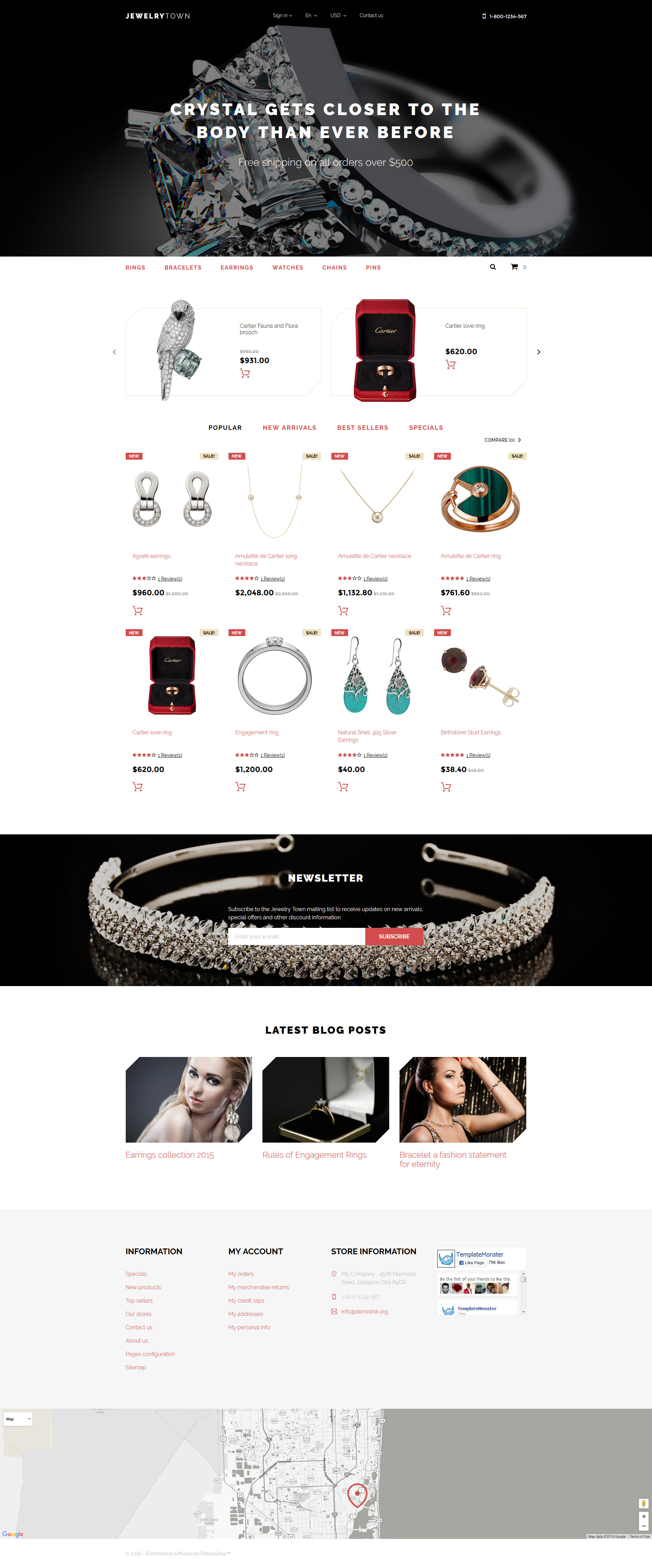 Jewelry - отлично подходит для сайтов в сфере Ювелирные украшения. PrestaShop шаблон интернет-магазина - Jewelry Town PrestaShop Theme.