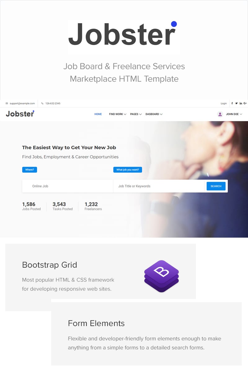 HTML5 современный шаблон - Jobster - Job Board Website Template, подходит для сайтов в сфере Бизнес и услуги.