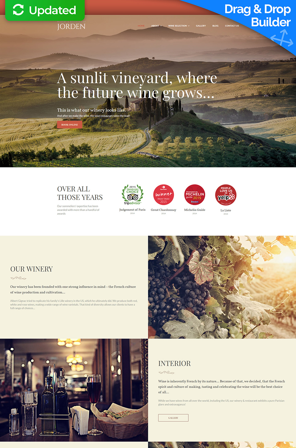 Moto CMS 3 эффектный шаблон - Jorden - Wine And Winery Moto CMS 3 Template, идеально подходит для сайтов в области Виноделие.