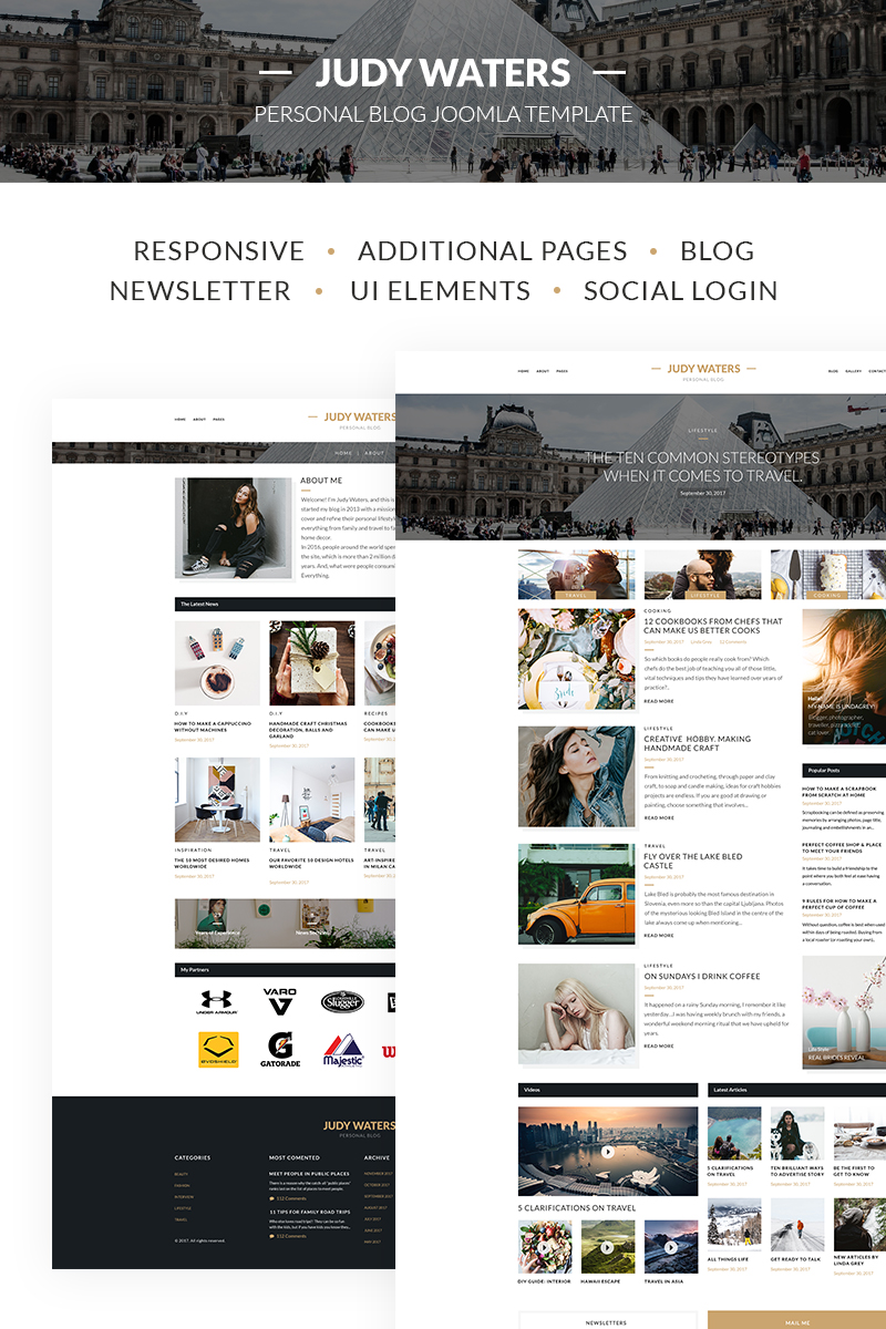 Joomla отличный шаблон - Judy Waters - Personal Blog Joomla Template, идеально подойдет для сайтов в сфере Персональная страница.