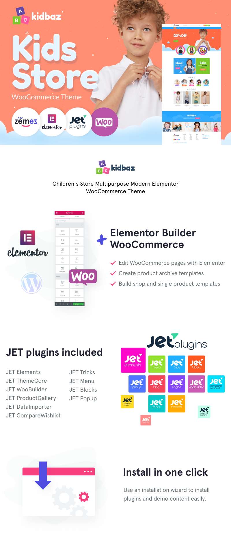 Kidbaz - идеально подходит для сайтов на тему Дети. WooCommerce онлайн-магазин Wordpress - Kids Stuff ECommerce Modern Elementor WooCommerce Theme.