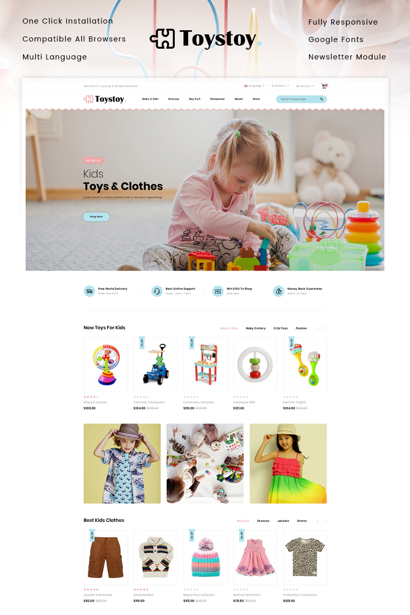 Shoe Store - специально для сайтов в сфере Магазин обуви. OpenCart шаблон интернет-магазина - Kids Cloth & Toy Store OpenCart Template.