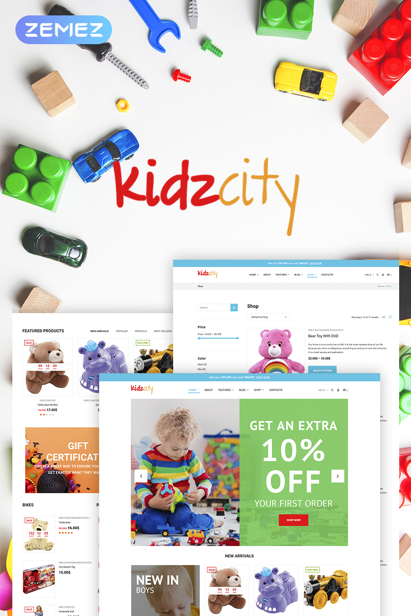 WooCommerce шаблон интернет-магазина Wordpress - Kidz City - Kids Store Elementor WooCommerce Theme, специально для сайтов Дети.