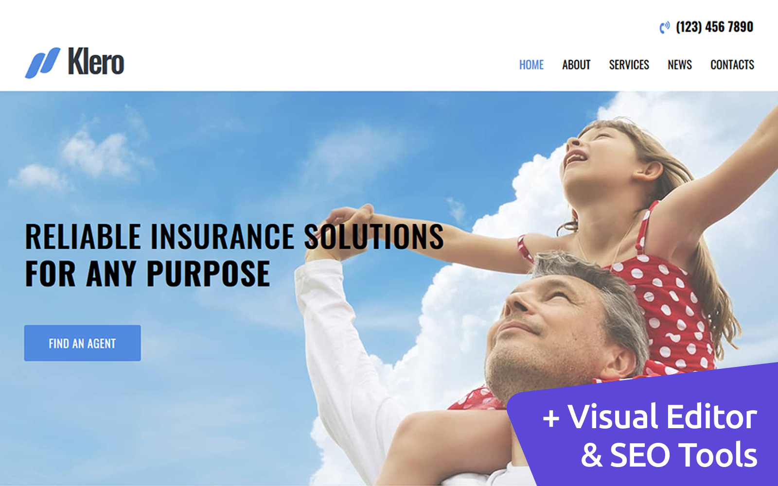 Klero - специально для сайтов на тему Страховая компания. Moto CMS 3 функциональный шаблон - Insurance Services Moto CMS 3 Template.