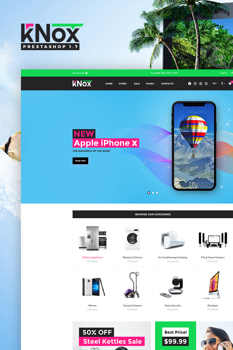 Electronics Store - хорошо подходит для сайтов в области Магазин электроники. PrestaShop шаблон интернет-магазина - kNox PrestaShop Theme.
