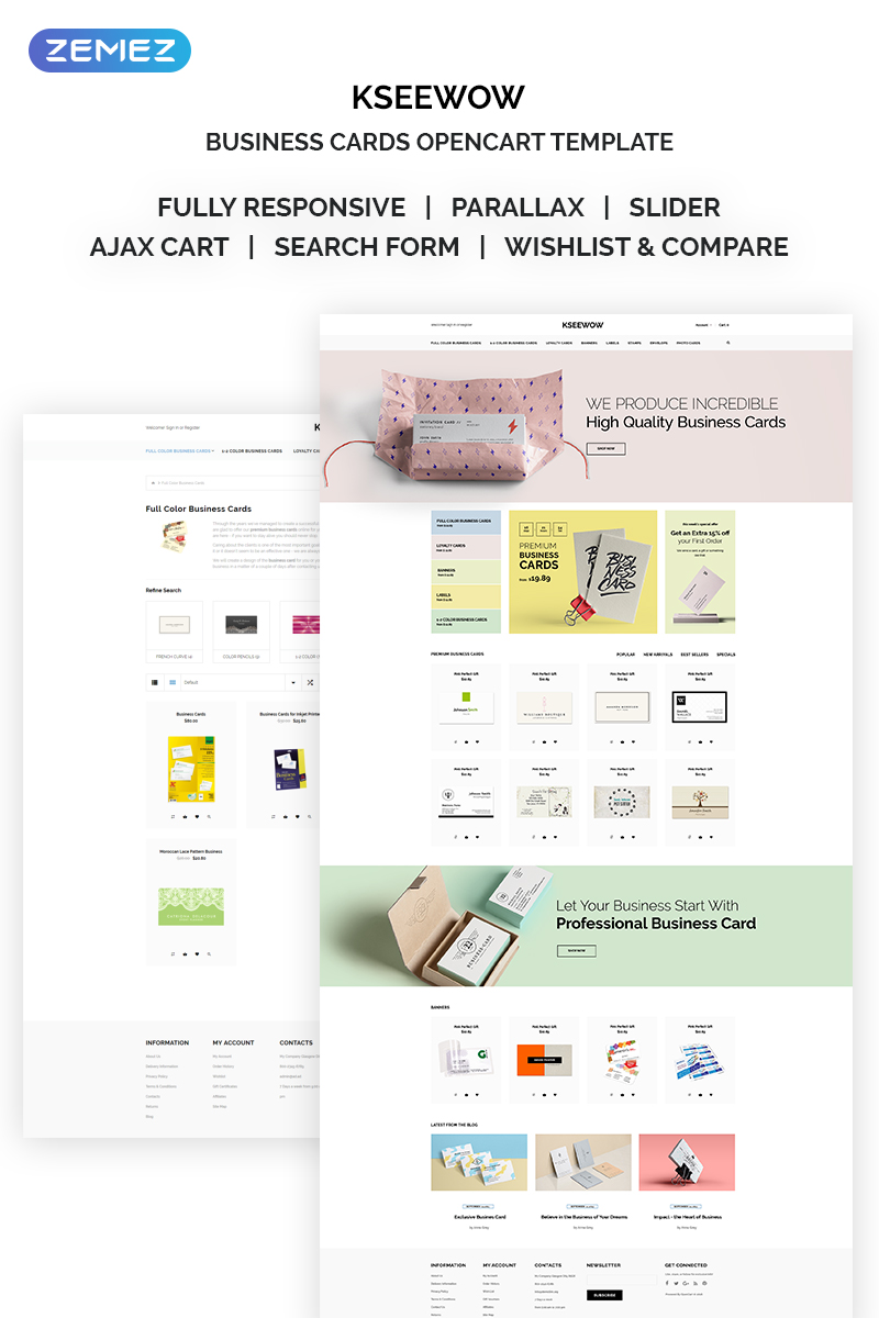 Kseewow - подойдет для сайтов Бизнес услуги. OpenCart шаблон для сайта интернет-магазина - Business Cards OpenCart Template.