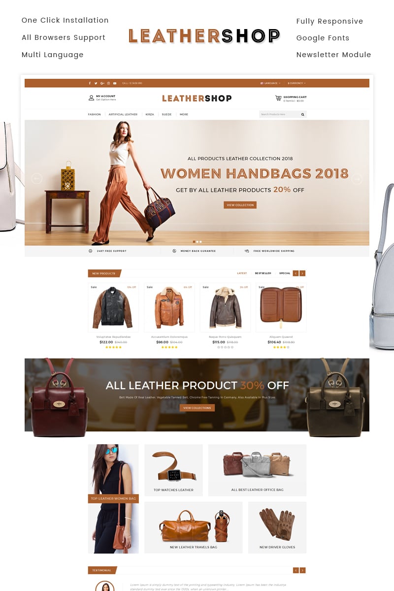 Handbag - идеально подойдет для сайтов в области Магазин сумок. OpenCart интернет-магазин для сайта - Leather Shop OpenCart Template.