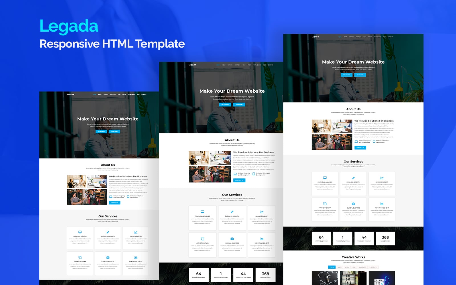 Лендинг шаблон одностраничного сайта - Legada - Responsive Landing Page Template, превосходно подойдет для сайтов в категории Бизнес и услуги.