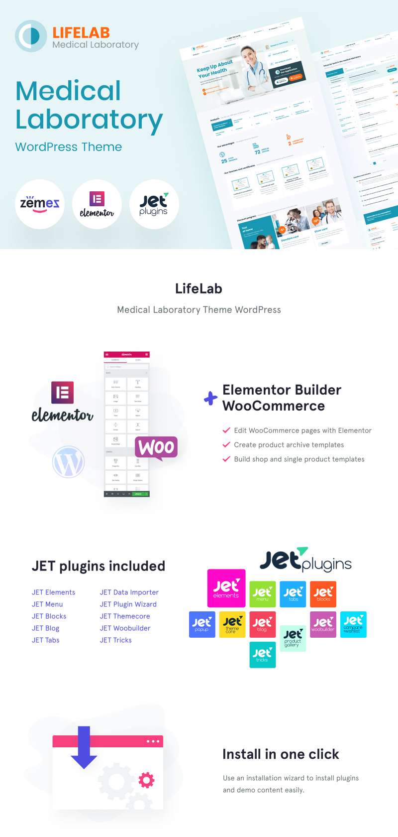 WordPress универсальный шаблон - LifeLab - Medical Laboratory WordPress Theme, хорошо подойдет для сайтов Медицина.