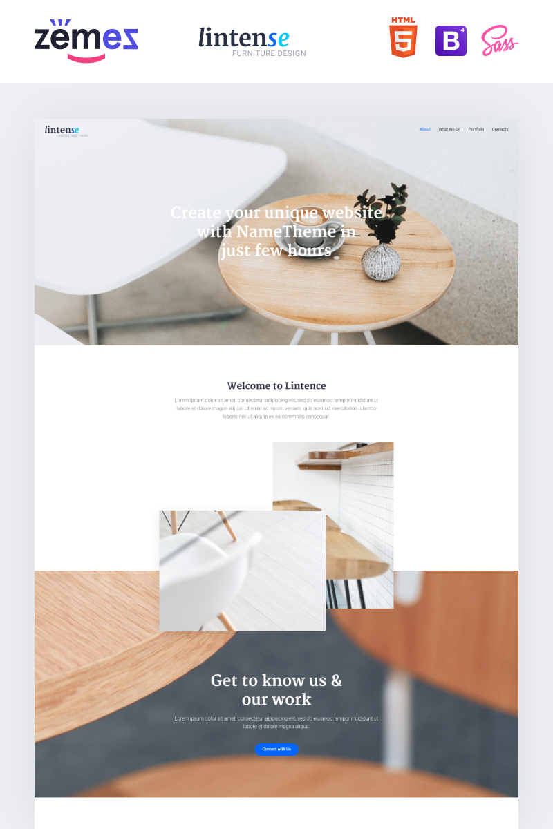 Лендинг шаблон посадочной страницы - Lintense Furniture Design - Interior Clean HTML Landing Page Template, отлично подходит для сайтов в сфере Мебель.