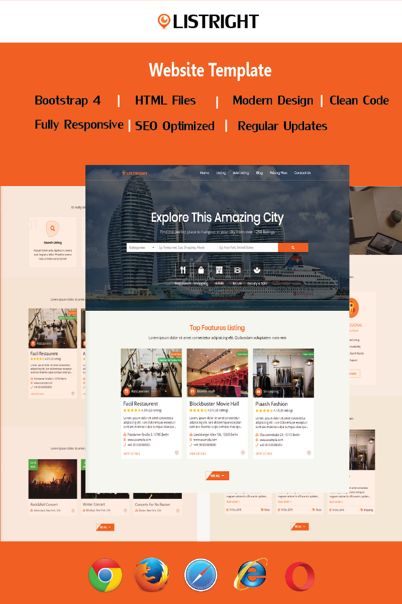 HTML5 шаблон - Business & Services - Directory Listing HTML5 Website Template, превосходно подойдет для сайтов в категории Бизнес и услуги.