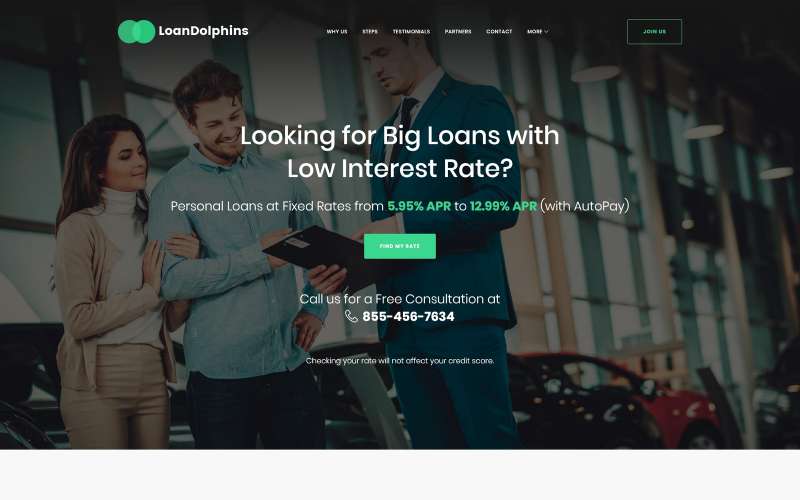 Loan Dolphins - отлично подойдет для сайтов в области Кредитование. WordPress шаблон - Loan Company One Page WordPress Theme.
