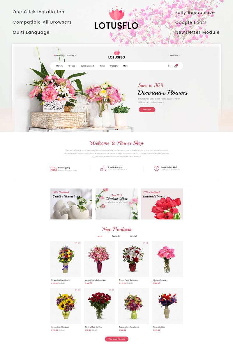Шаблон opencart магазина цветов - Lotusflo - OpenCart шаблон для сайта интернет-магазина