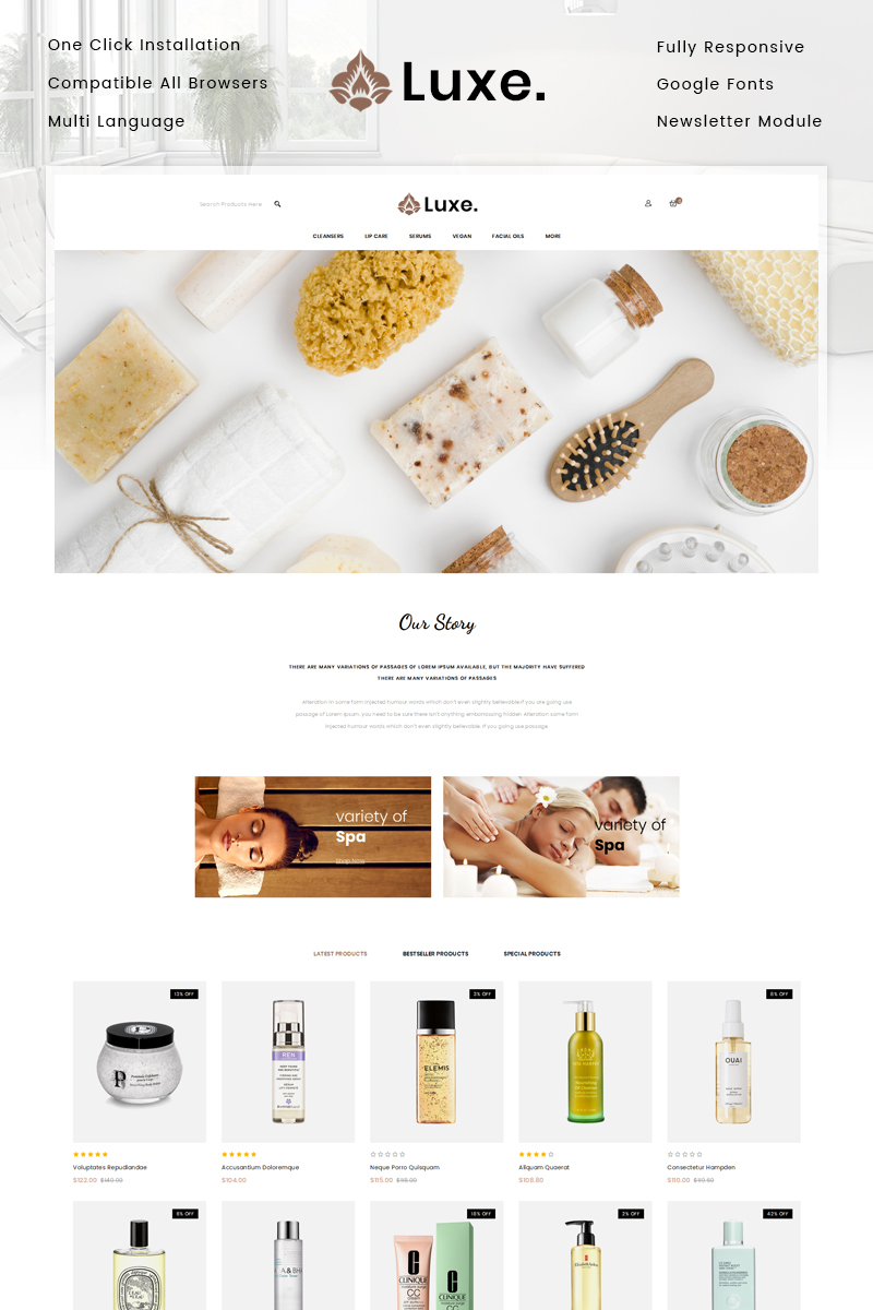 OpenCart интернет-магазин - Cosmetics Store - Luxe Spa Store OpenCart Template, подходит для сайтов на тему Магазин косметики.