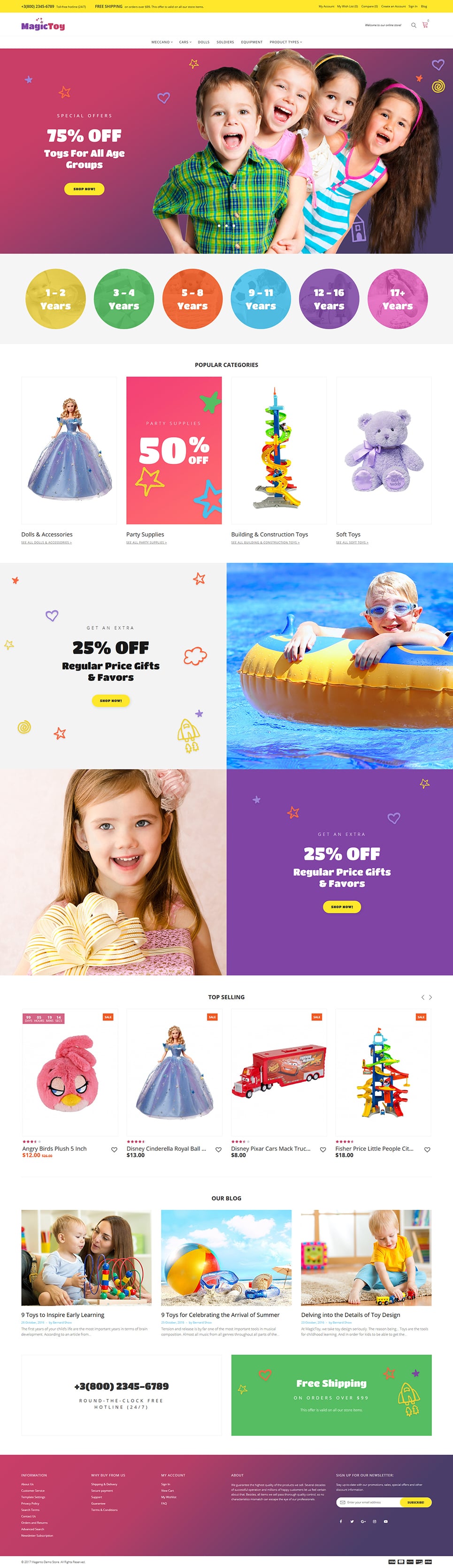 Magento приятный шаблон - MagicToy - Baby Toys Magento Theme, подойдет для сайтов в сфере Новорожденные.
