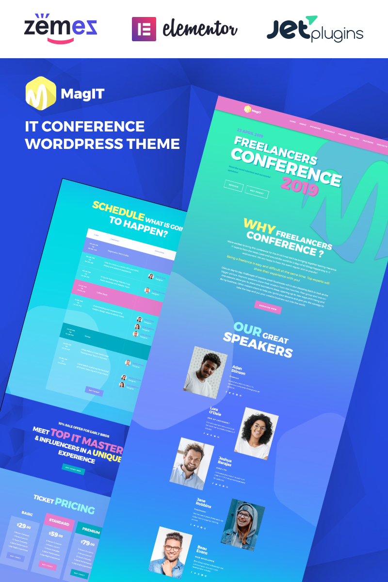 MagIT - специально для сайтов в категории Информационные технологии. WordPress эффектный шаблон - IT Conference WordPress Elementor Theme.